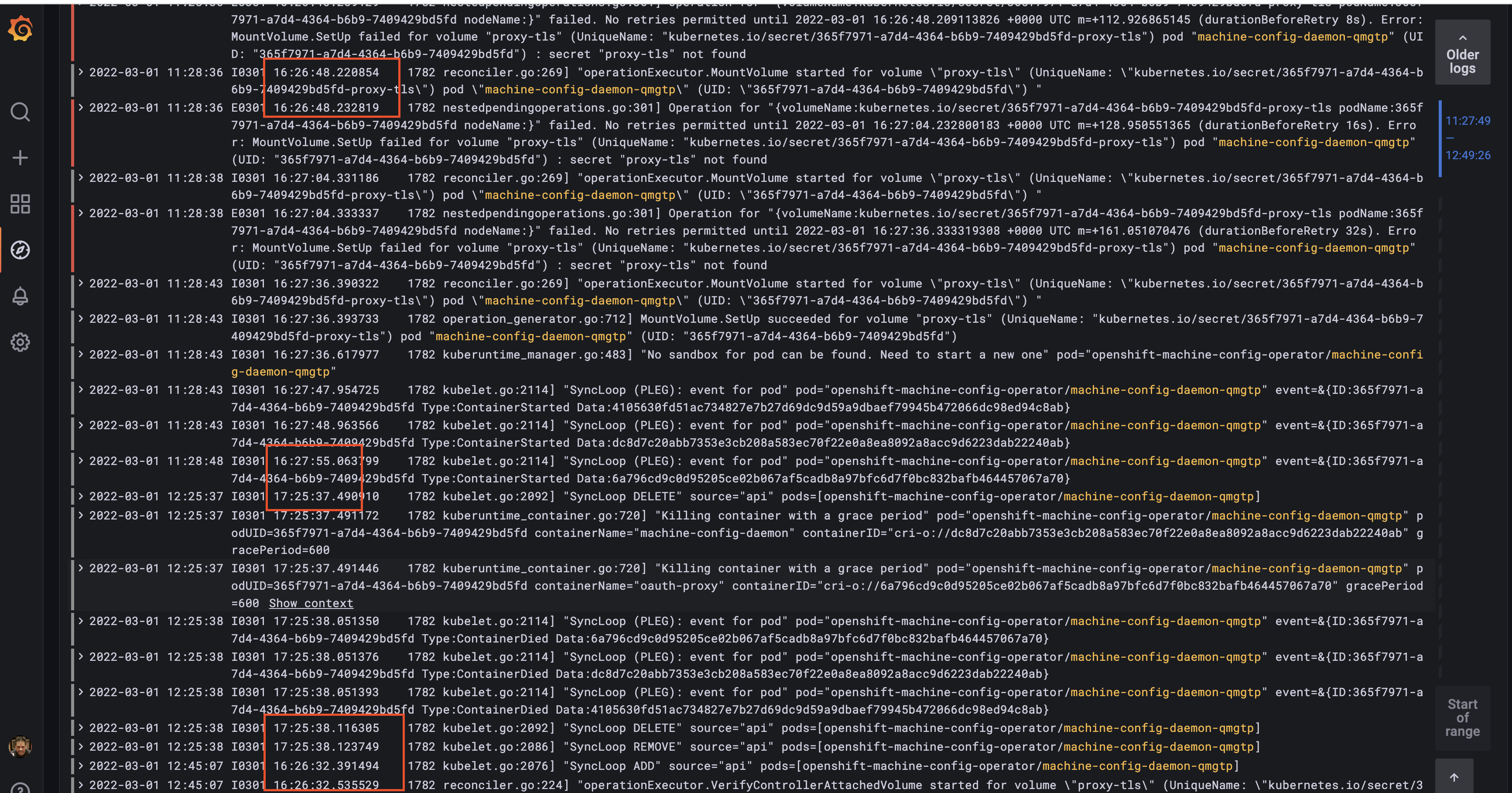 there are two time streams shown in the screenshot above (I assume the left one is loki time and the right one is the pod time). The times differ by time zone so the minutes should be roughly the same; we can attribute small differences in time to latency from getting the logs from the pod to loki.