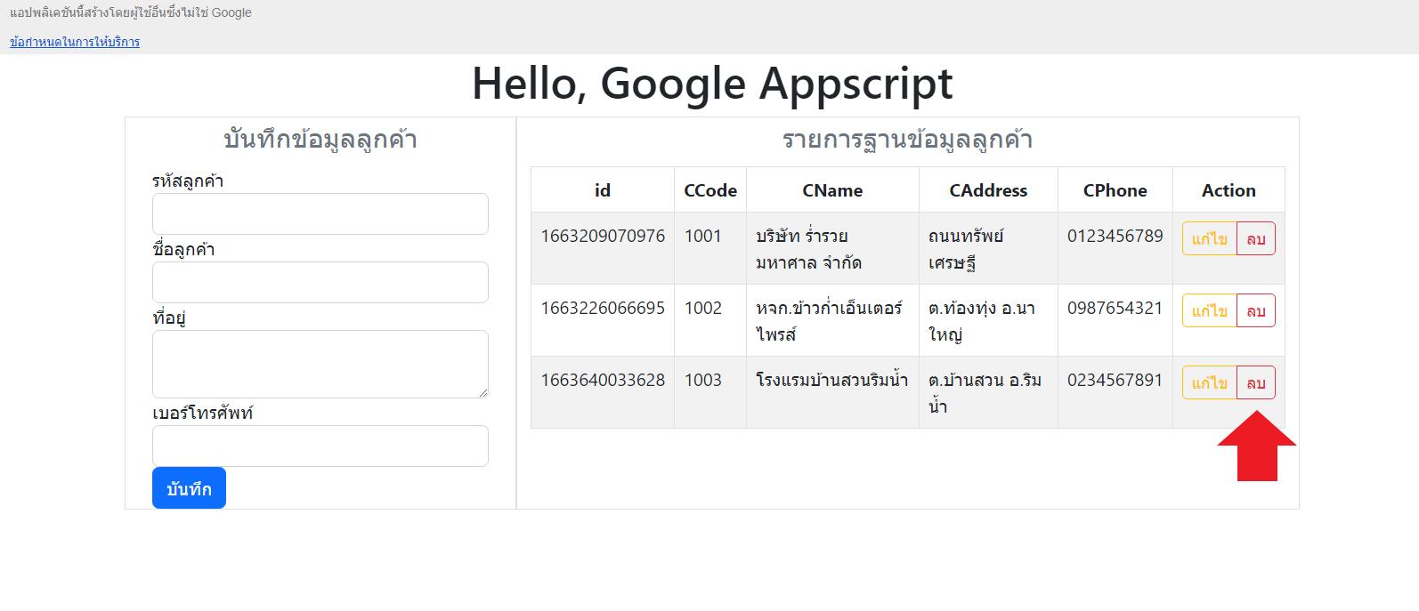 - เขียนฟังก์ชั่น Apps Script อ่านข้อมูลจากกูลเกิ้ลชีต