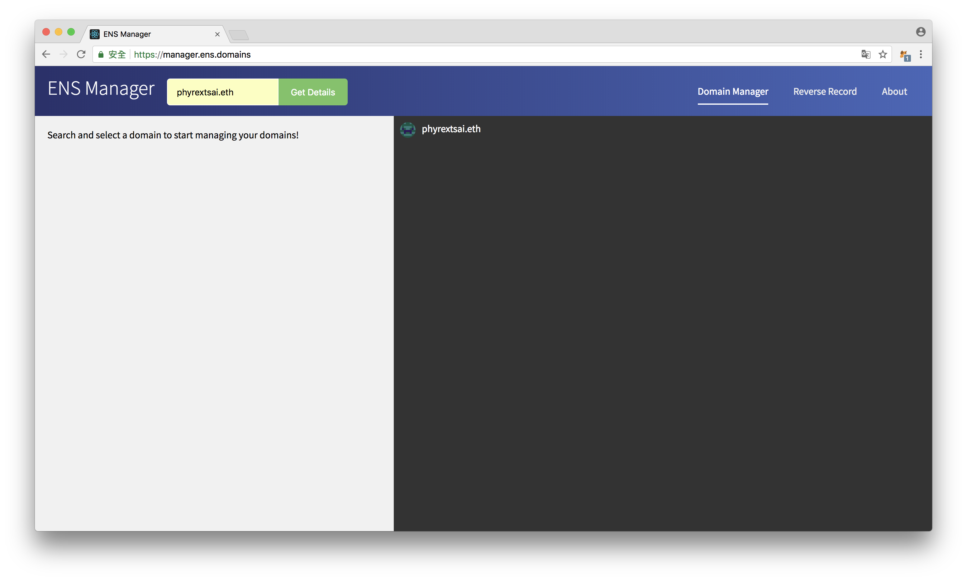Step 1. Link to https://manager.ens.domains, and search ENS which you want to bind with IPFS hash