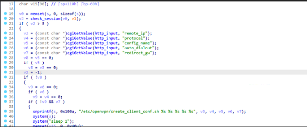 The parameters from http_input are written directly to the buf of s without filtering, followed by system, which can causecommand injection