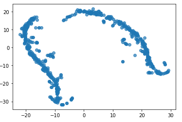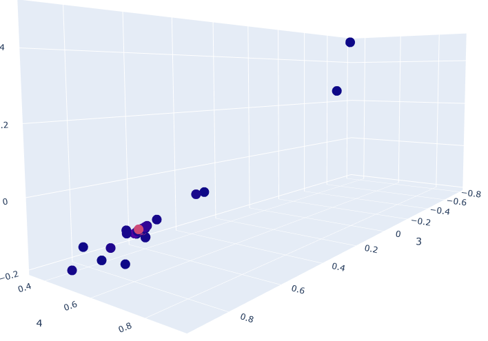 color represent density, so we can see that we basically have one large group, and all the dots jittered around are probably outliers.