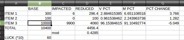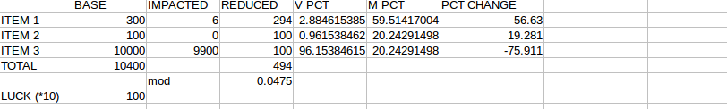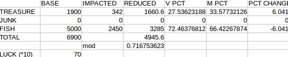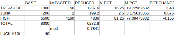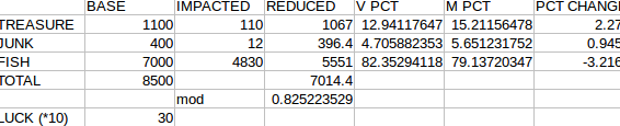 | // V PCT = Vanilla Percent Chance, M PCT = Modified Percent Chance | |