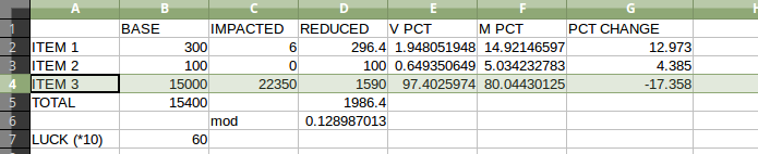 | BASE IMPACTED REDUCED V PCT M PCT PCT CHANGE | |