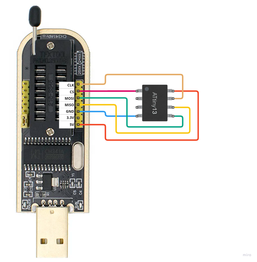 По идее, должна совпадать со всеми AVR Tiny у которых распиновка аналогичная ATtiny13