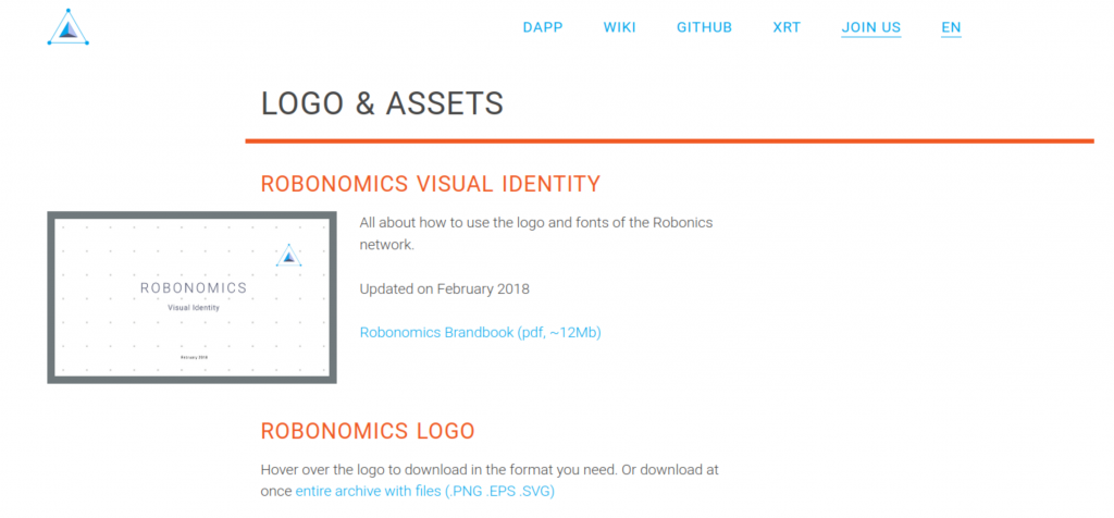 На сайте Robonomics.network есть раздел "Logo & Assets", в котором сегодня можно найти рекомендации по применению фирменного стиля Робономики, шаблоны для презентаций в стиле Aira и Робономики, а также обои для рабочего стола и ссылку на стикеры для телеграмм.