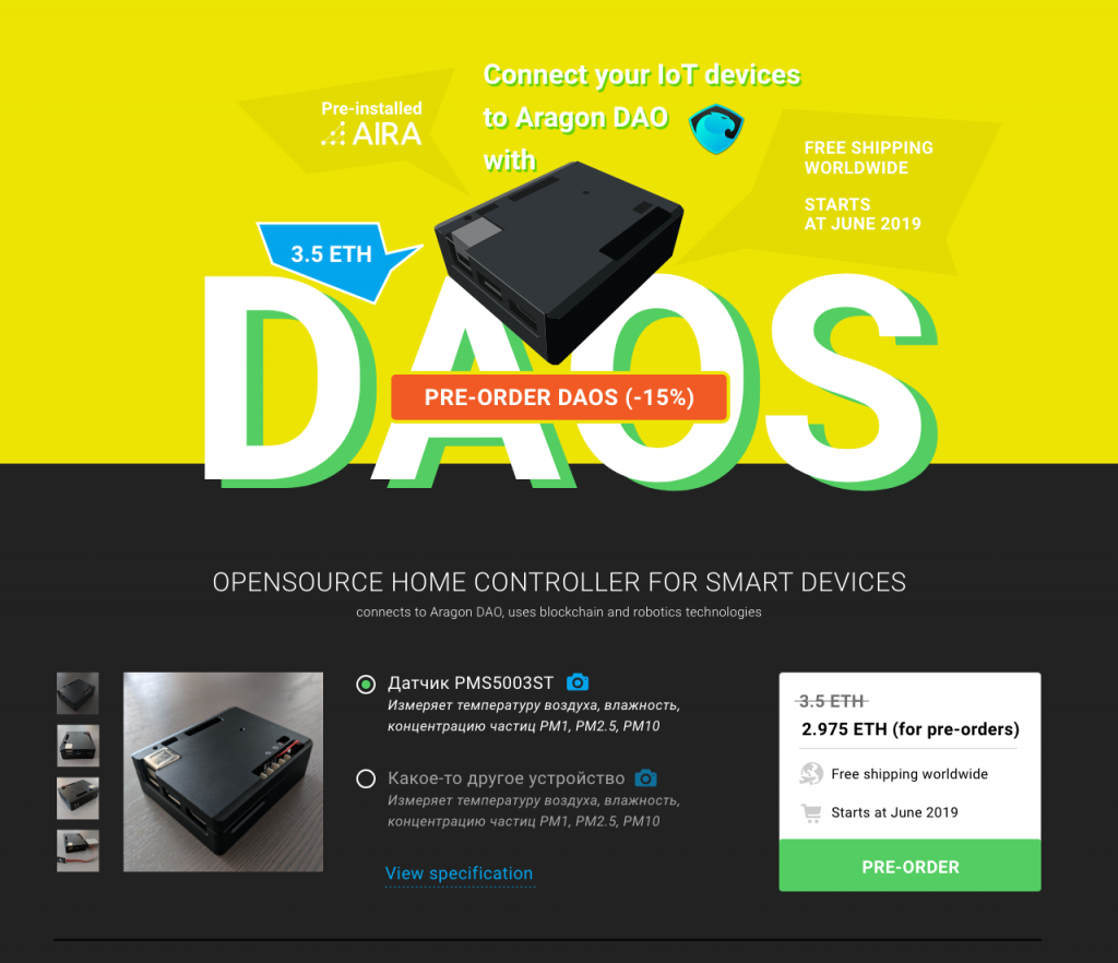 Мы пробуем в своей работе Арагон ДАО. Один из экспериментов прошлого года привёл нас к идее нового модуля для образа Aira под названием DAOS agent. С помощью данного модуля мы продемонстрируем и предоставим инструкцию, как можно управлять умными устройствами в офисе или коворкинге, с помощью голосования в Арагон ДАО.