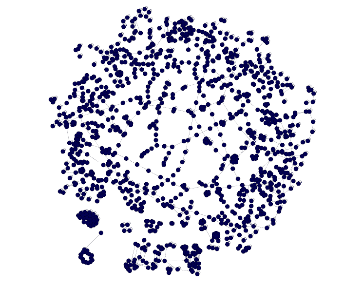 Plot of all of the maps in the wz file, generated using Gephi. This removes the most common node that keeps the graph fully connected. One idea is that keeping just the Sleepywood maps would be pruning all of the maps that are not connected to those maps by filtering on their location. Even easier, I can get rid of Ossyria and just keep Maple Island and Sleepywood.