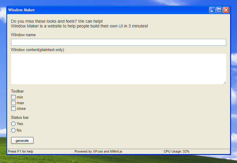 When we visit the challenge page we get the following form (with a nice and nostalgic Windows XP layout):