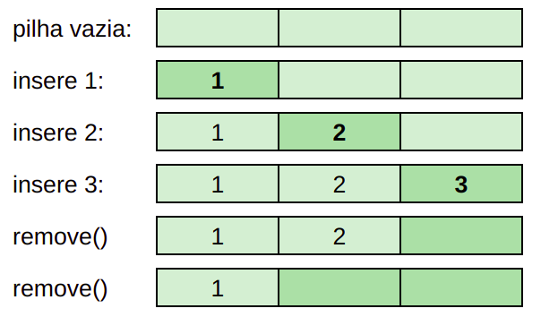Portanto, quando um elemento é removido, sempre deve sair o último elemento que entrou na pilha: