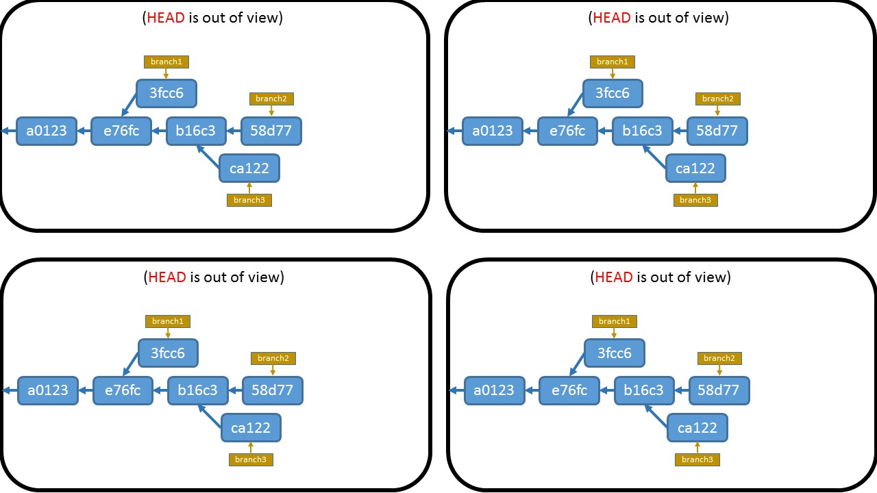 We begin with the same state of the repository (pictures in all quadrants are the same):