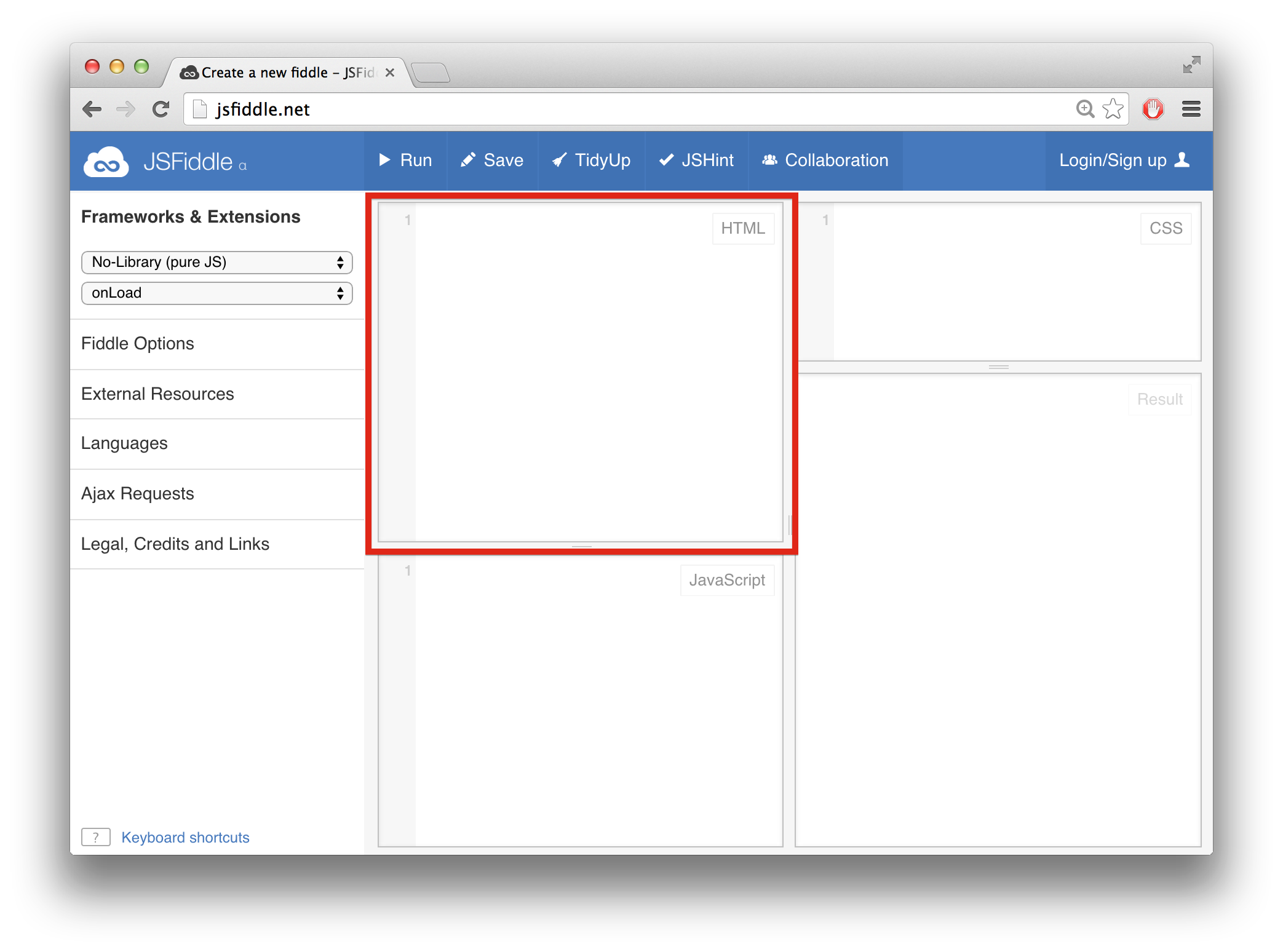 Open JSFiddle - http://jsfiddle.net - in a new tab (right click on the link - open in new tab)