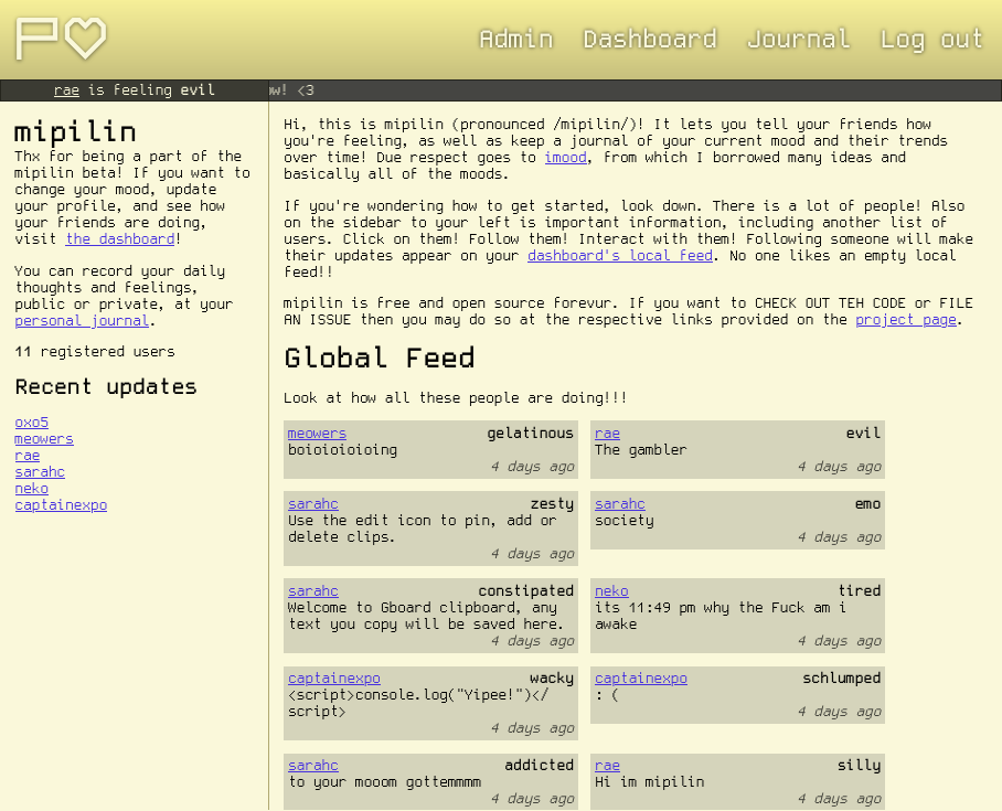 mipilin is a website lets you check on how your friends are doing, which is a very good and noble thing and something you should feel proud of for even considering. Also you can let YOUR friends know how YOU'RE doing. I guess.