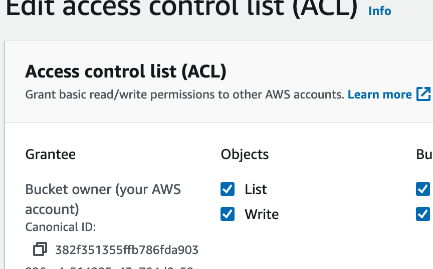 - Scroll to the "Access control list (ACL)" section and click the "Edit" button.