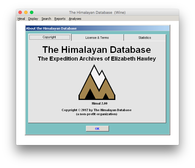 The Himalayan Database is a Microsoft Visual Foxpro 9 program.