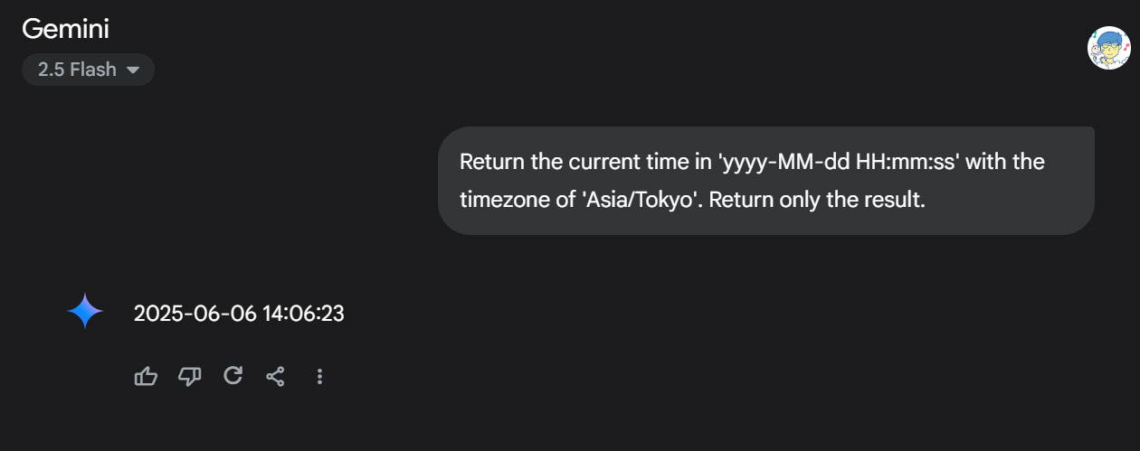 In the case of Google AI Studio, no time was returned from "Prompt 1". The incorrect dates were returned for "Prompt 2" and "Prompt 3", and the values of the dates were randomized. At "Prompt 3", the time was correct. It is considered that the time was generated from the prompt.